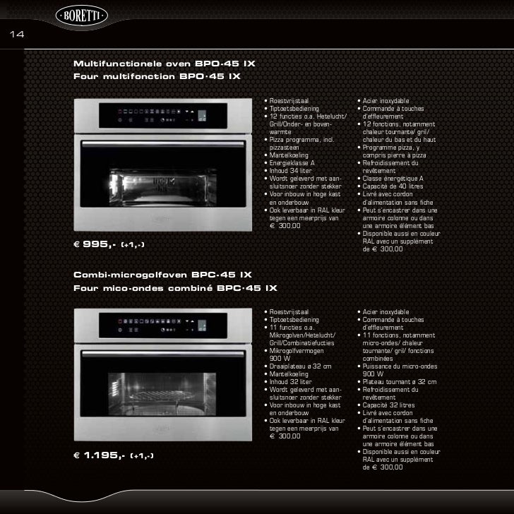 Kijk snel en ontdek het zelf. Boretti , combi magnetron type BPC45ix € 1200. Reageer op deze vraag Misbruik melden. De monteur heeft het euvel niet kunnen vinden. Voor iedereen een voordeel.