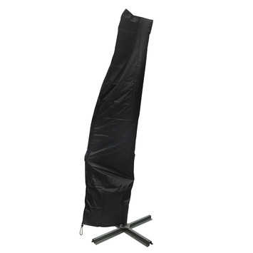Bij het aanbrengen van de hoes hoeft u niet op een trapje te gaan staan, maar doordat er een stok door de hoes heen zit, is het mogelijk om de hoes eenvoudig over de parasol te bevestigen. Passende hoes voor zweefparasol. Op momenten dat je de zweefparasol wil opbergen, bijvoorbeeld in de winter of 's nachts, gebruik je deze zwarte hoes. De hoes is waterafstoten sterk en duurzaam bij elk weertype.